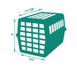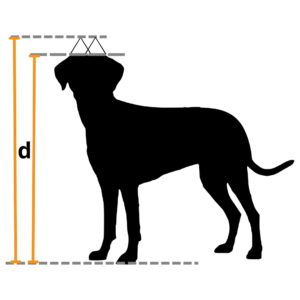 Alto: Cuando tu mascota esté de pie mide desde el suelo hasta la parte superior de su cabeza o hasta la punta de sus orejas si es de orejas erguidas (Medida d); y añade de 5 a 10 cm ya que recuerda que ni sus orejas ni cabeza deben rosar el techo de su transportadora.