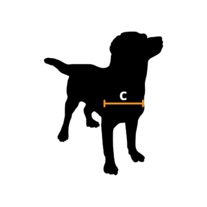 Ancho: Duplica la medida que salga de medir la parte más ancha de tu mascota (Medida c), generalmente la parte del pecho, es decir entre los hombros de tu mascota.
